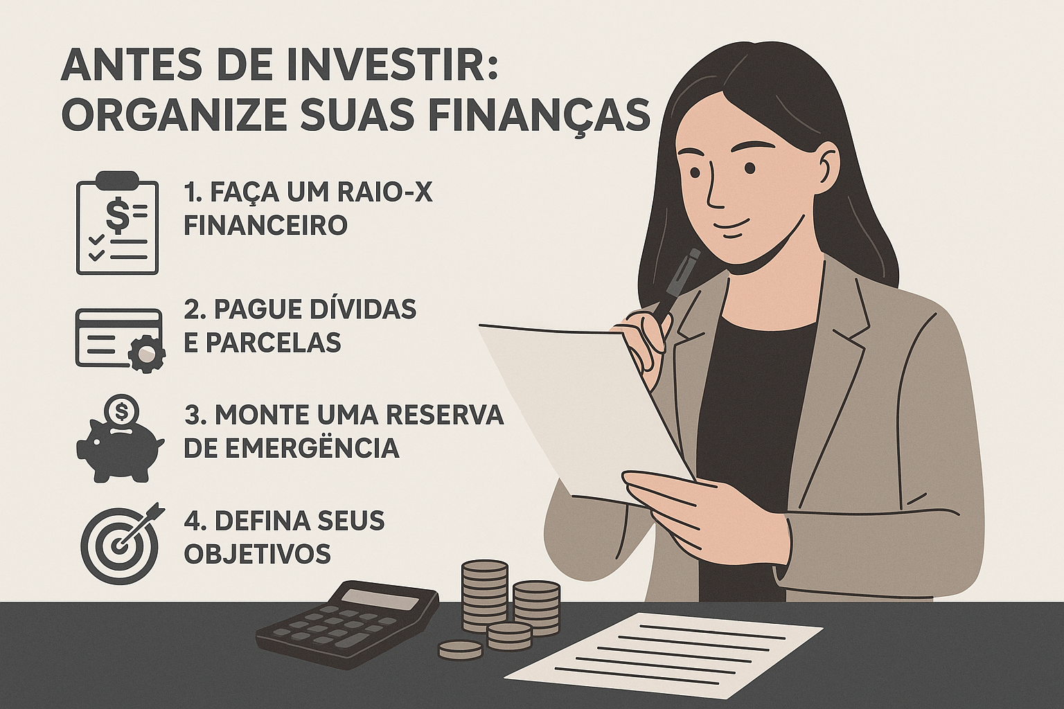 Excelente. Só tem um detalhe importante: investimento não começa na corretora — começa no seu controle financeiro.