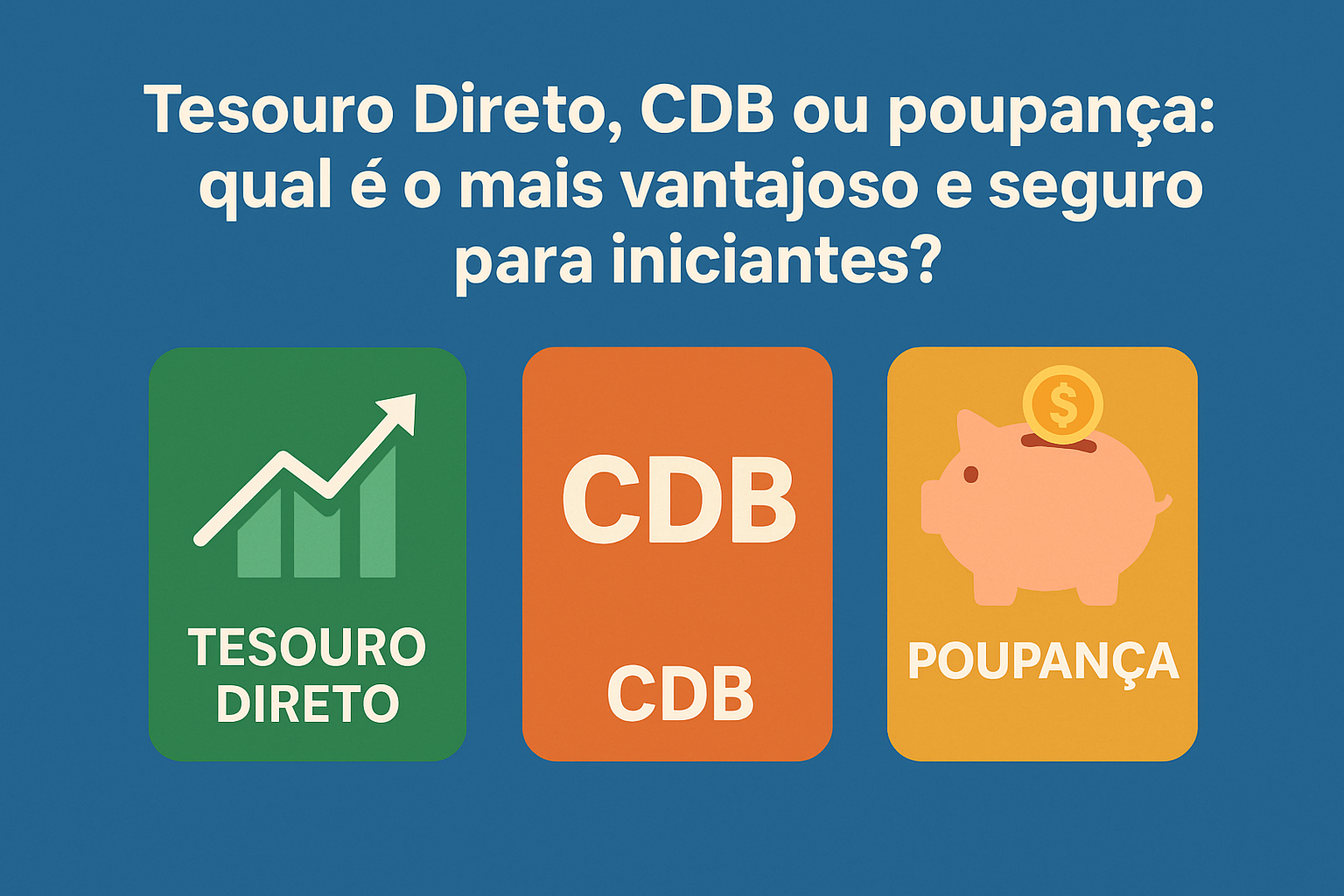 Para quem está começando a investir, é comum a dúvida entre as opções mais simples e acessíveis do mercado. A poupança é a mais tradicional, o Tesouro Direto é indicado como porta de entrada, e o CDB aparece com frequência nas plataformas de bancos e corretoras.